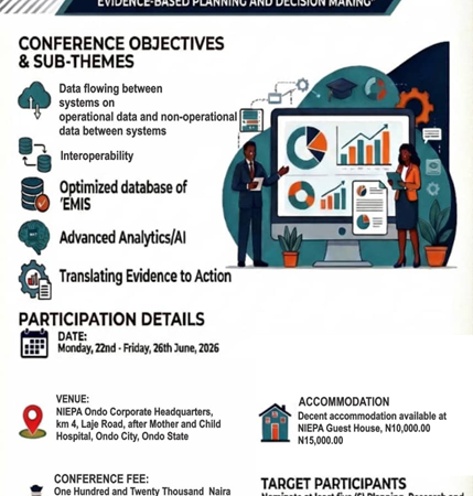 The National Institute for Educational Planning and Administration (NIEPA), Nigeria, was conceived by the Federal Ministry of Education, in collaboration with UNESCO/IIEP Paris, as a Sub Regional Staff College with the main operational mandate and mission of developing a critical mass of education sector planners and managers for the effective and efficient planning and management of the educational system, through capacity building: continuous training, consulting, research, information dissemination and resource center services.